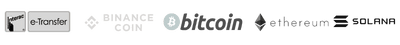 Pay securely with E-transfers, BTC, ETH, SOL, and BNB
